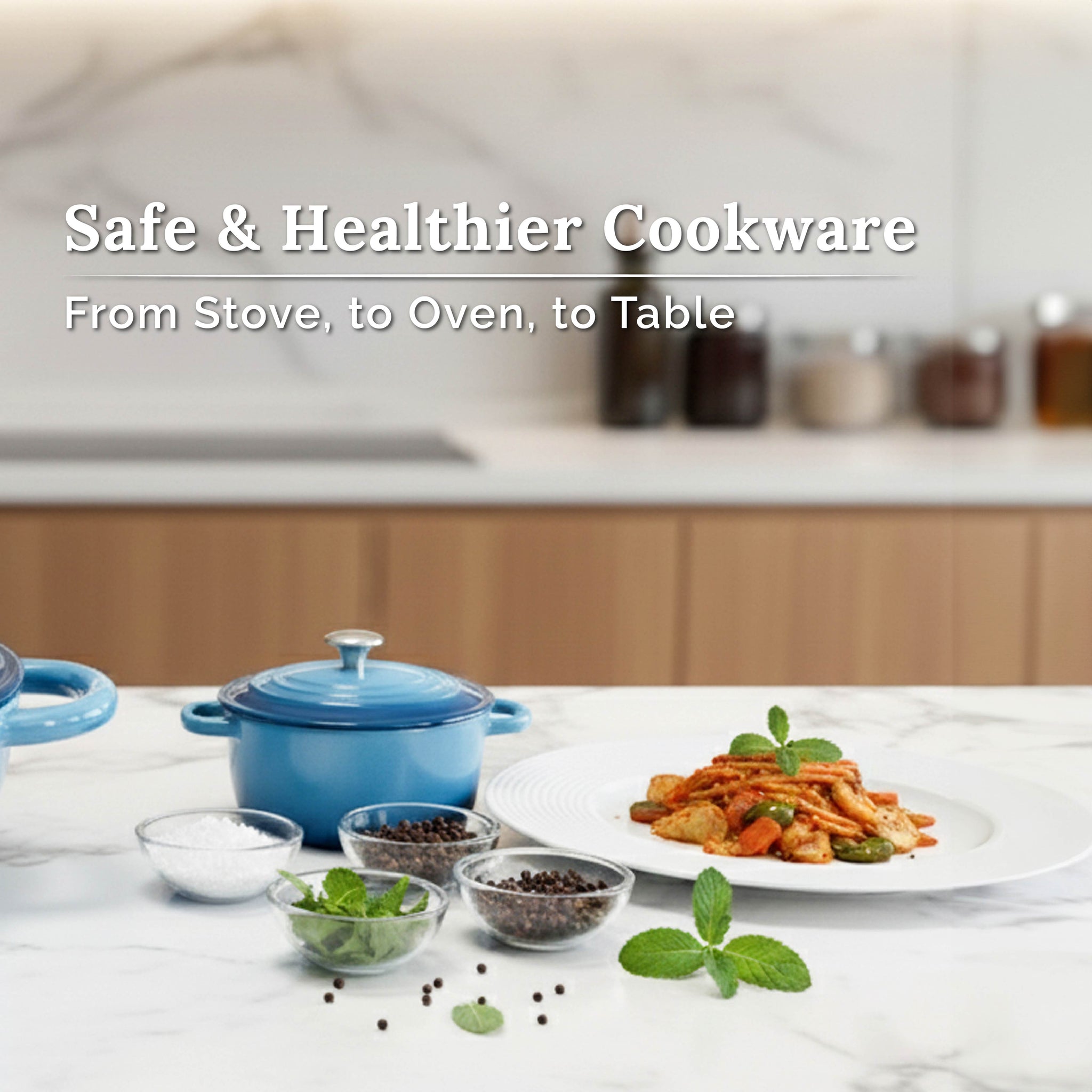1) Healthy & Safe : Crafted from iron material, this enamelled casserole ensures safe cooking by being PFOA, PTFE, and PFAS free.