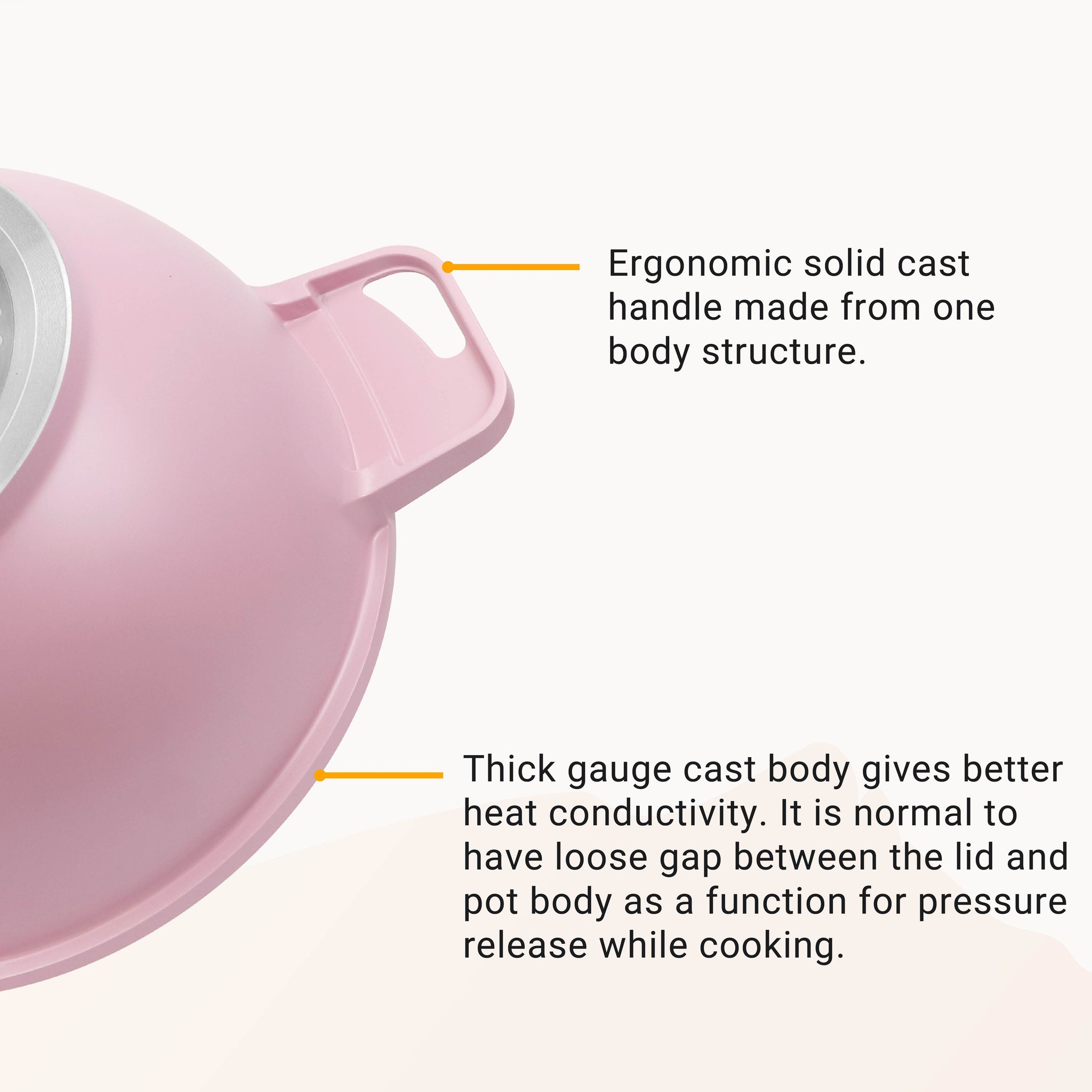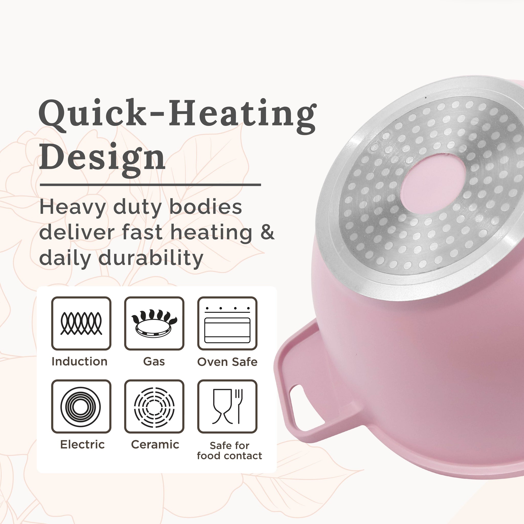 The Cuisineur IH Bellerose 3pcs Cookware Set not only looks great in any kitchen with its aesthetic pink color scheme but also has features that make cooking enjoyable while being easy to clean after use.