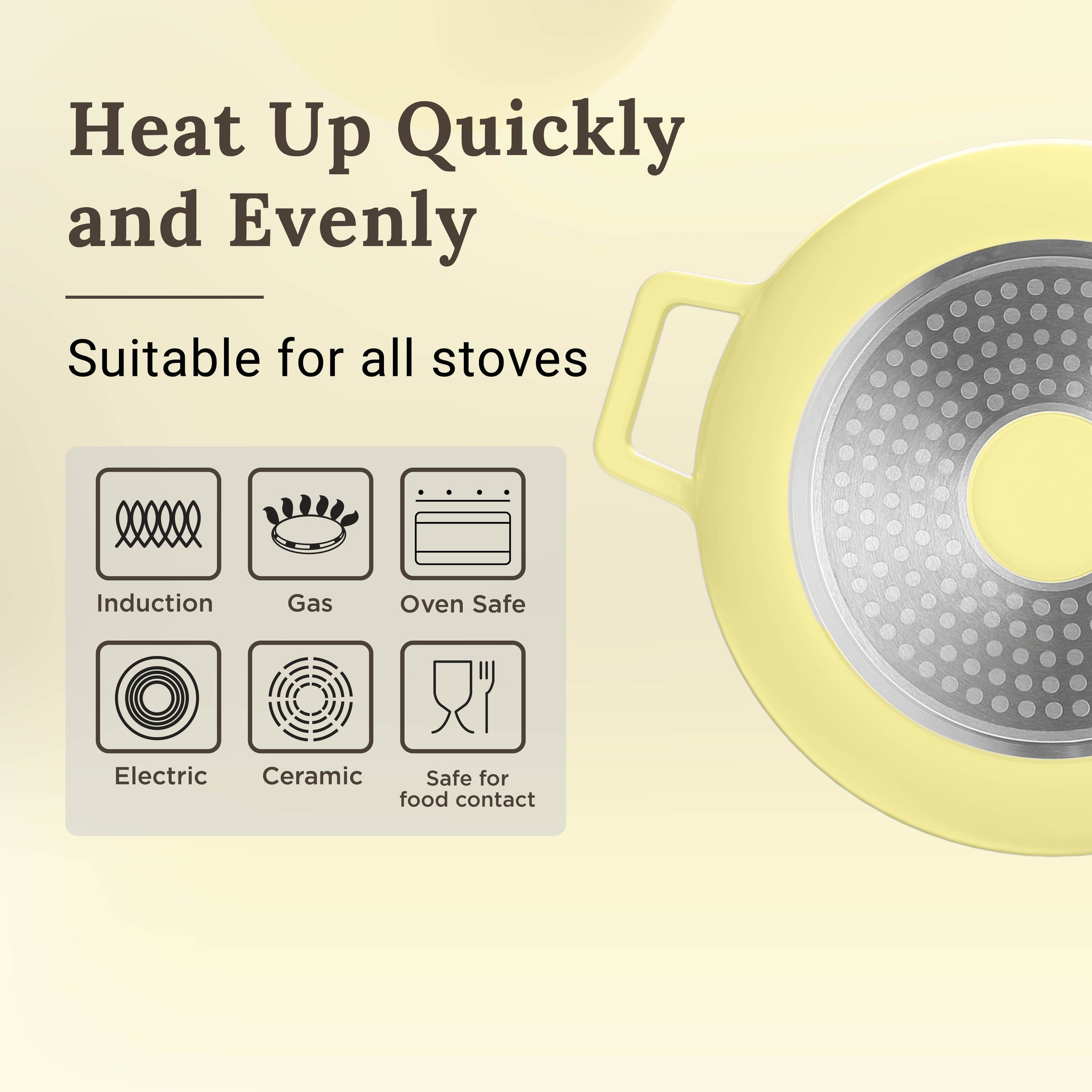 - Safe and Healthy: The ceramic non-stick coating is free from PFAS, PTFE, and PFOA, ensuring that your food is cooked without any harmful chemicals.