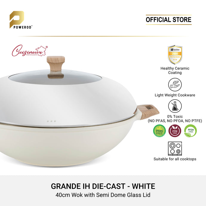 Cuisineur Grande Wok 40cm (White) IH Die-Cast ceramic coating